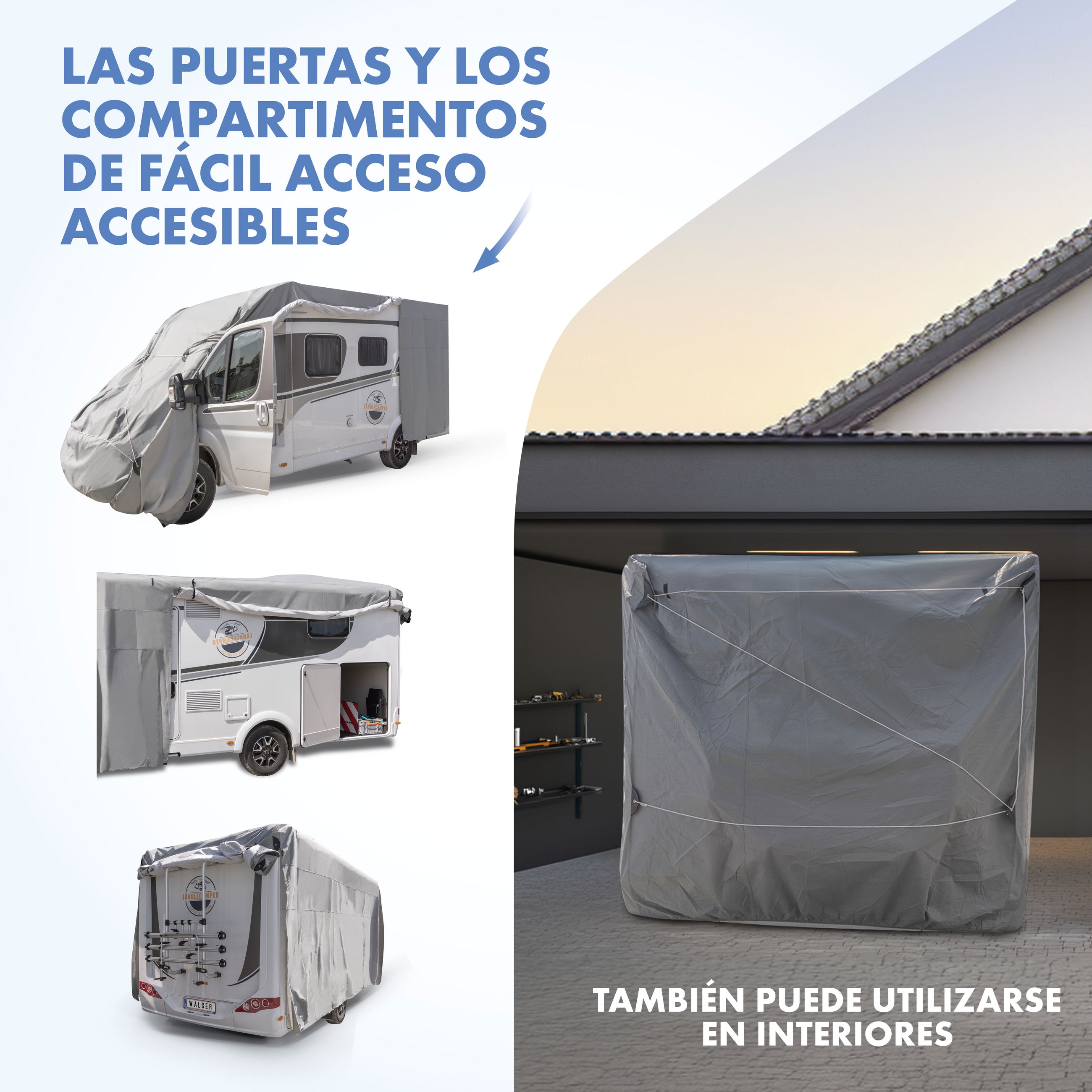 Premium Wohnmobil cubierta protectora, wetterfeste Wohnmobilabdeckung 730x250x225 cm (Dachlänge: 655 cm) gris