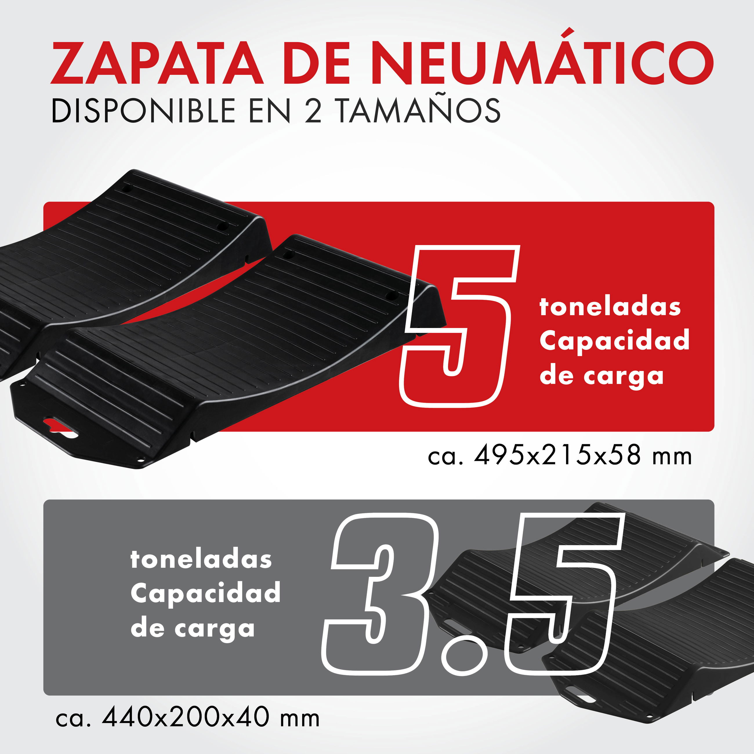 Coloque la zapata de neumáticos delante del neumático y desplácese lentamente sobre ella hasta que el neumático esté completamente asentado. La gran superficie de contacto y la banda de rodadura antideslizante garantizan un agarre óptimo. Para neumáticos más anchos, puede conectar dos zapatas de neumático mediante el sistema de clic integrado. La zapata de neumático protege sus neumáticos de la deformación y es ideal para largos periodos de uso, tanto en interiores como en exteriores.