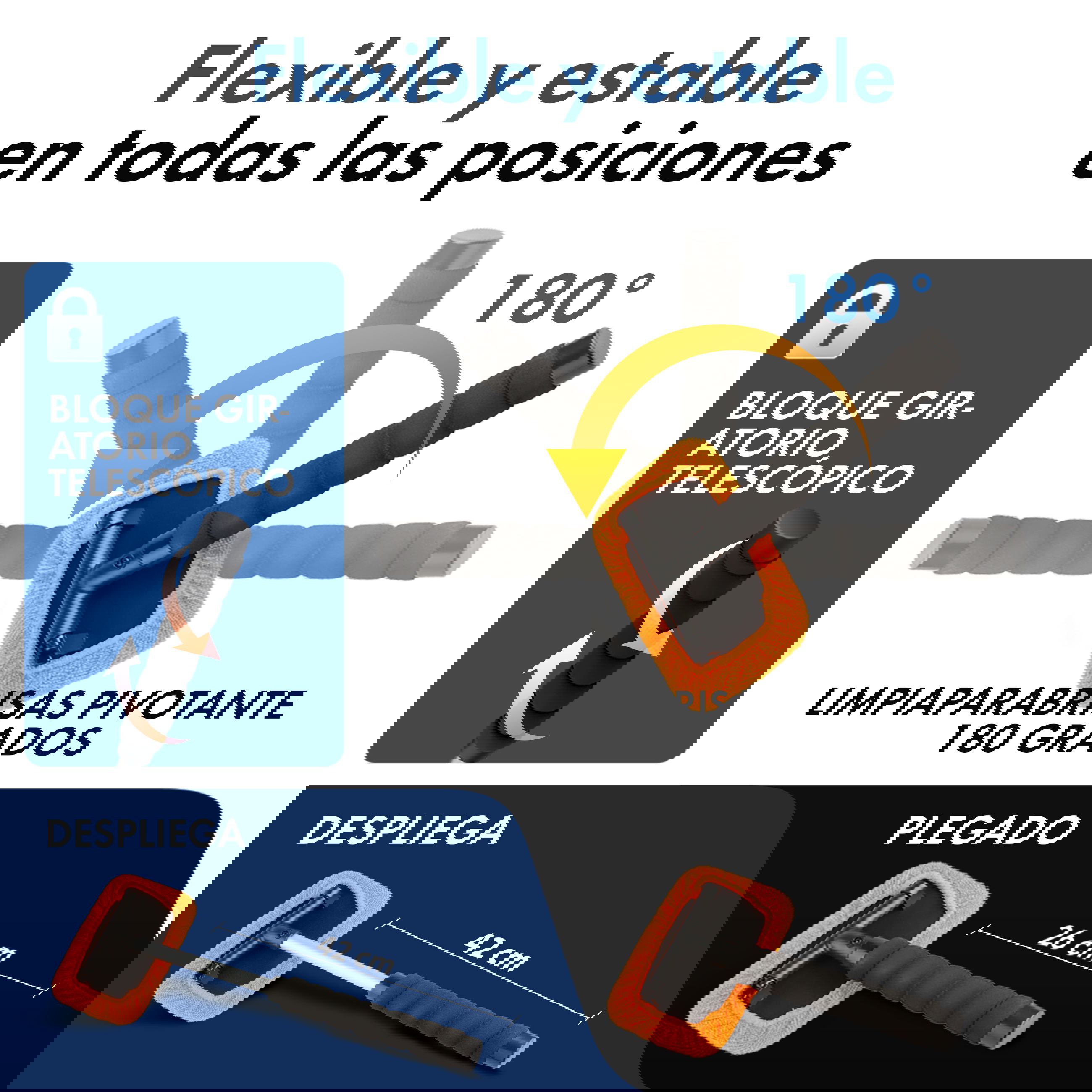 Todos los parabrisas de los coches pueden limpiarse rápida y fácilmente con nuestro limpiaparabrisas. Como es telescópico, puede llegar a todos los rincones sin problemas.